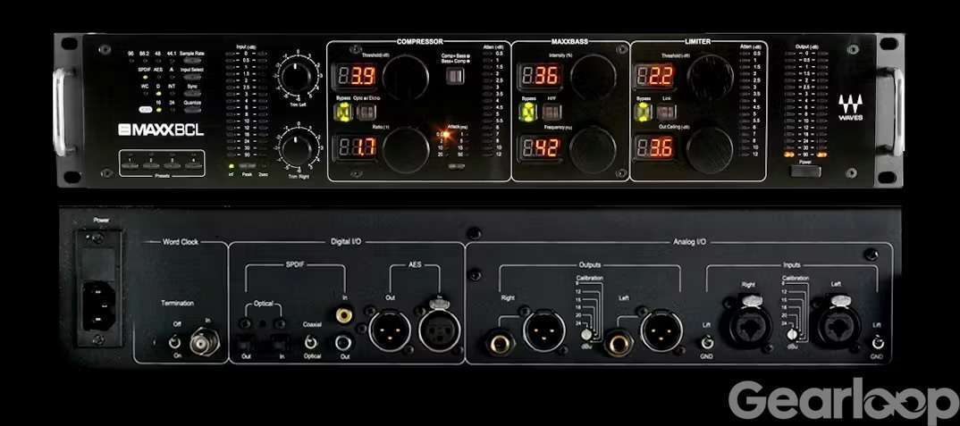 Waves MaxxBCL är en hårdvaruprocessor som kombinerar Waves MaxxBass, Renaissance Compressor och L2 Ultramaximizer i en enda enhet. Den är känd för sin mångsidighet inom liveinspelning och mixning.