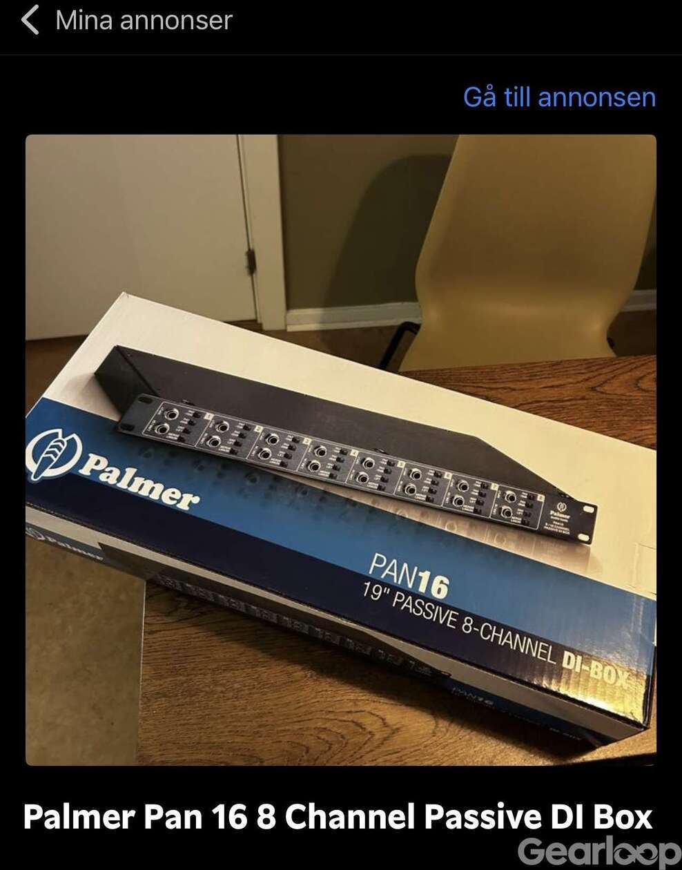 Helt oanvänd Palmer PAN16 19" passiv 8-kanals DI-box.