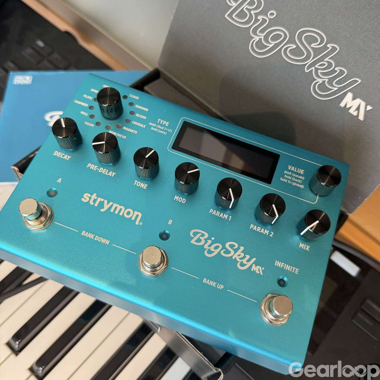 BigSky MX från Strymon, nästa generations reverbpedal. Den låter större, bredare och mer uttrycksfullt än något annat på planeten, med en mängd nya funktioner och möjligheter. Tolv olika reverb, i stereo.