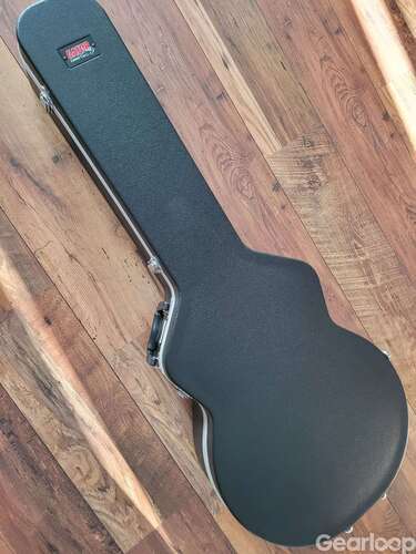 Gator hardcase För elektriska gitarrer i semi-hollowbody-stil. Har själv använt det för en Epihphone sheraton semihollow, typ Gibson 335 (det har fungerat bra, men jag har upplevt det aningen för stort) caset är anpassat för något tjockare gitarrkropp typ epiphone emperor.