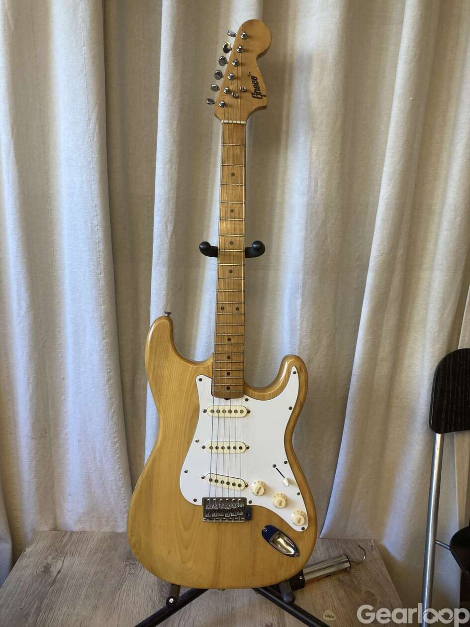 Japan vintage Matsumoku-75. Naturligt fint trä helt original utan knapparna till ton och volym. Mickarna är Maxon och den levererar grymt, mycket roligare än en ny strata. Den har personlighet och består av några träbitar och lite elektronik. Genomgången och färdig för 50 år till.