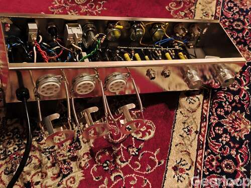 "Hej, det är en kit från Nordström audio. Jag bygge den typ 2-3 år sen och har aldrig giggat med den. Det är helt stock men jag köpte andra ”coupling caps” också om du ville ändra dem i framtiden för att ha en lite tighter ton när du spelar högt, som är en vanlig mod".