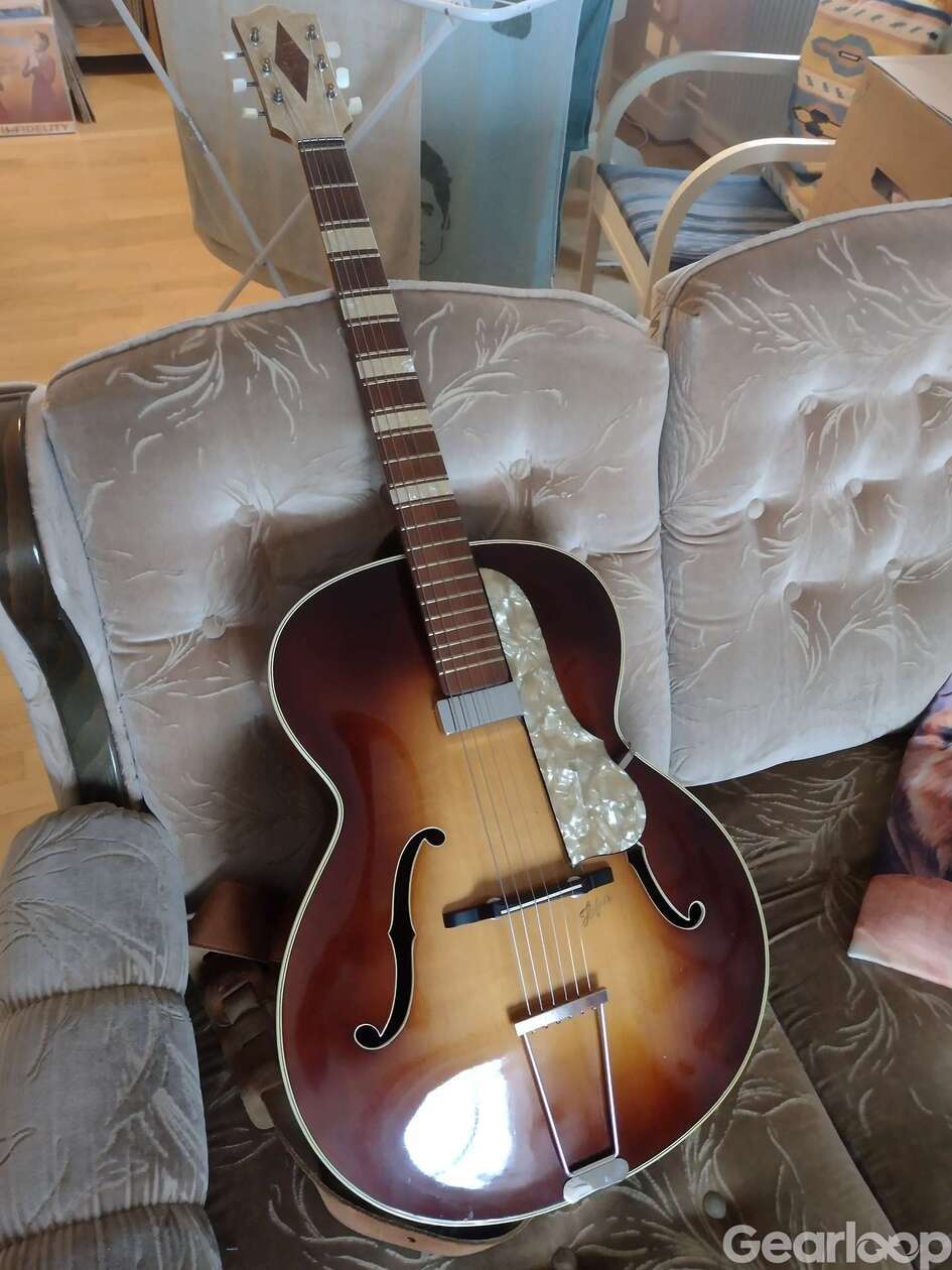 Mycket fin jazzburk från 1958. I bra skick. en stämskruvknopp bytt. Har satt dit en mick som har hög output. Coolt inbundet burkigt blues sound. Enda modden är ett hål i sidan där jag satt input jacket. bra gitarr. bandslipad o klar att spela på. originalband i mässing. ring eller skicka sms. mailen funkar inte bra.