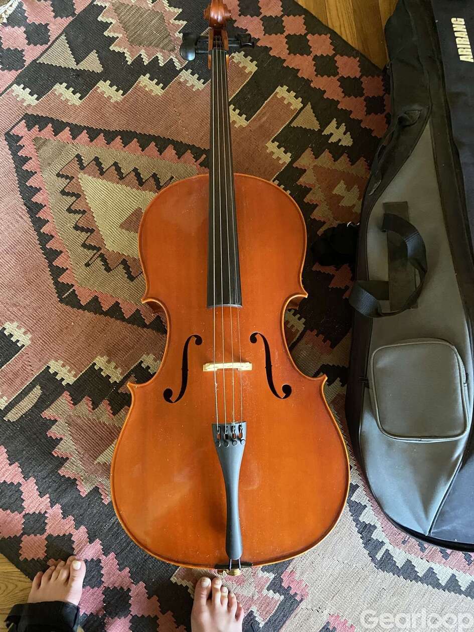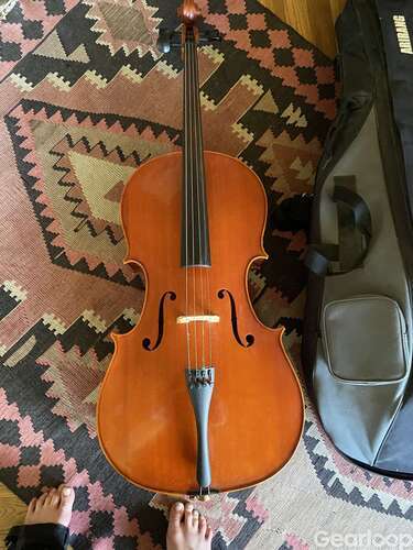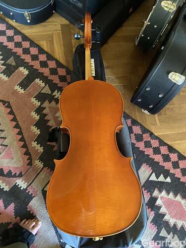 Bra skick, softcase ingår. Och en sliten stråke (behöver omtaglas), går att spela med lite till dock.