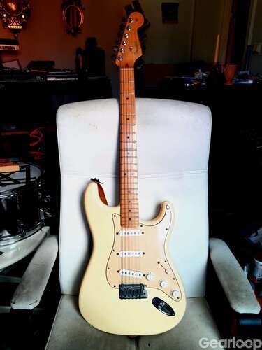 strata i fint skick, krämfärgad/vit vid byte vill jag ha något högre i byte då stratan egentligen mer värd. Just nu sitter lundgren mickar på den men originalen kommer såklart med.
