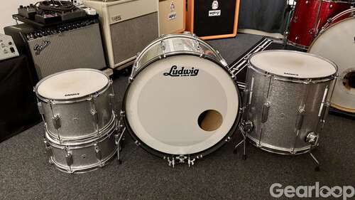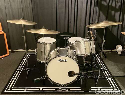 Världens finaste trumset i nära nyskick. Byggt i USA. Silver Sparkle. 22x14”, 16x16”, 13x9” + virvel 14x6.5” med P88AC mekanik. Frontskinn original, resten Evans. Några lösa originalskinn medföljer. Ludwig L1304BA ankare samt Evans EQ Pad i bastrumman. Hämtas i Halmstad.