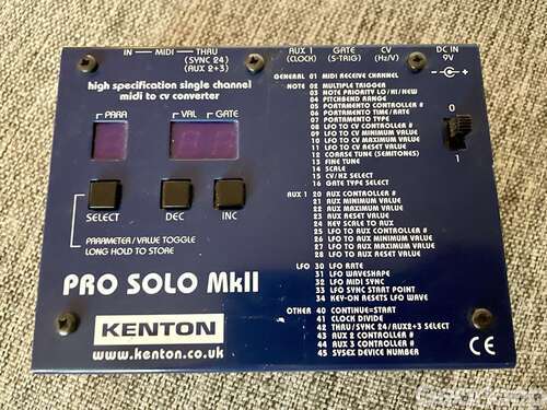 Kenton Pro Solo MkII är en högkvalitativ single channel MIDI till CV converter. Denna enhet är idealisk för att koppla samman MIDI-utrustning med analoga synthesizers och andra CV-styrda enheter. Den har en mängd olika inställningsmöjligheter och parametrar för att anpassa MIDI-signalen till CV-utgångar. Perfekt för musiker och ljuddesigners som vill integrera MIDI med äldre analog utrustning.