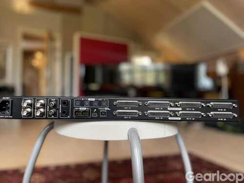 32 analoga in/ut samt Madi och Adat som låter grymt. Dessutom väldigt bra och lättanvänd programvara för routing etc. Vi säljer kortet för att vi ska möblera om lite i studion och därför är i behov av ett annat kort.