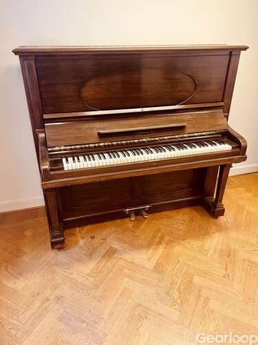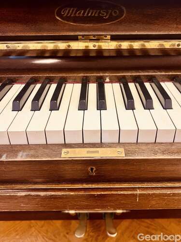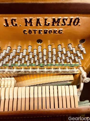 Ett pampigt piano från svenska Malmsjö. Tillverkat 1932 i Göteborg. Träslagen är ek, valnöt och prima nordisk gran. Pianot är i fantastiskt skick och mycket sparsamt använt trots sin aktningsvärda ålder.