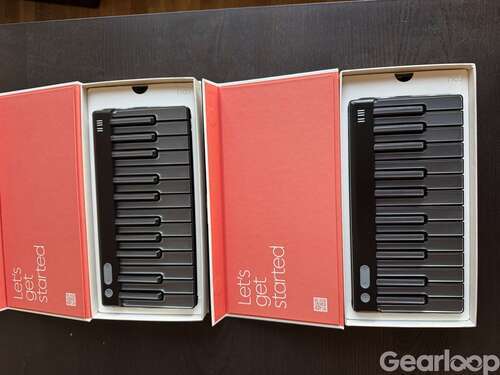 A pair of 24 key midi keyboards that are very modular. You can play them separately or stick them together to form a 48 key keyboard. Works over Bluetooth or usb c. Has multiple levels of expressiveness - press, slide, wiggle, pull off etc. Works as it should, and comes