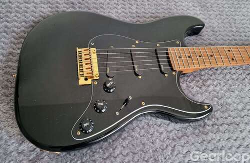 JET JS400 black-gold,som ny,inte en repa,moddad med EMG SA pickups set,locking tuners,fender sädlar. Kan skickas i en begagnad hard case.Ny pris med EMG mickarna,locking tuners,sädlar, ca.6500kr., min pris 2999 kr.