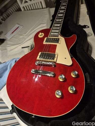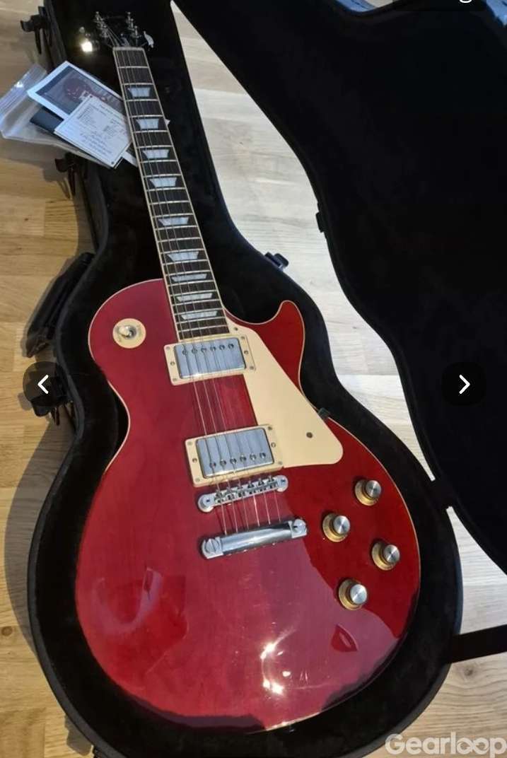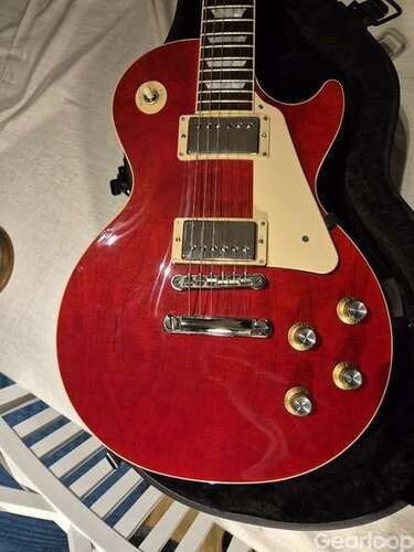 Gibson Les Paul Classic 2023 i mycket fint skick härlig vinröd färg med otroligt snygg topp den har push/pull coilsplit