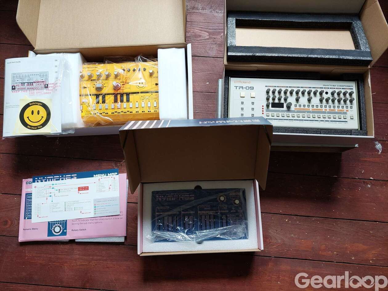 På grund av tråkigheter som hus och körkort rensar jag i gömmorna och där doldes inget mindre än en väldigt bra utgångspunkt för att göra klassisk house/techno. Det enda som saknas är en sequencer att driva Nymphes med, och har du inte Ableton eller liknande så känns gratismjukvaran Seq66 klippt och skuren för ändamålet. Samtliga har originalkartong och dokumentation.