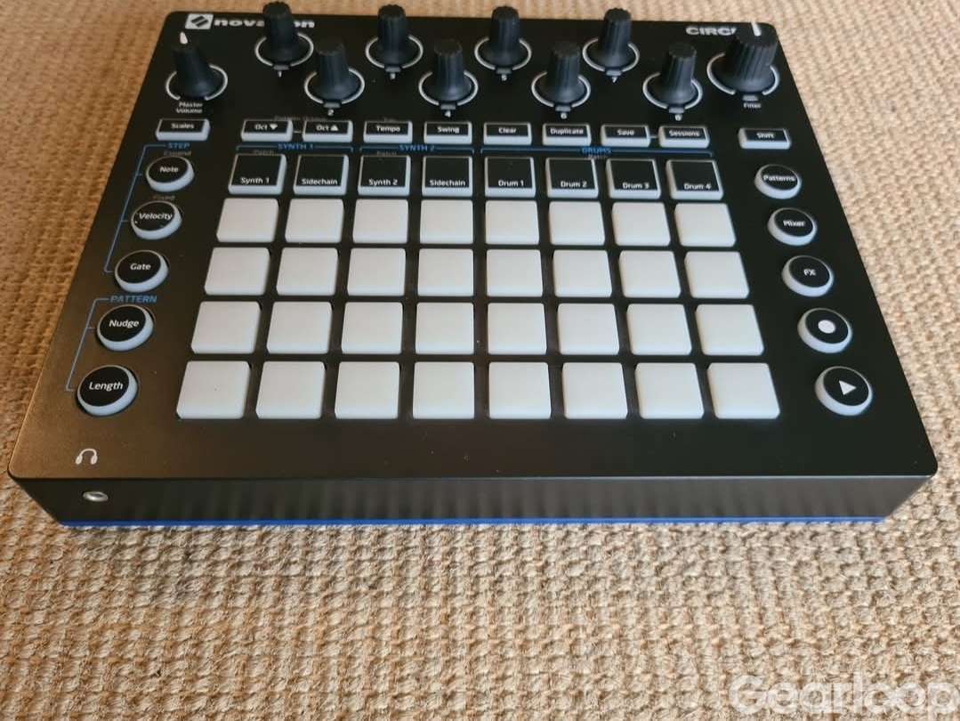 som har 4 separata trumspår och två separata synthspår i sequencern (Novation Nova generatorer med virtual analog, wavetable, 6 röster per synth) med effekter som delay och reverb samt det sköna att slippa titta på en display eller skärm.