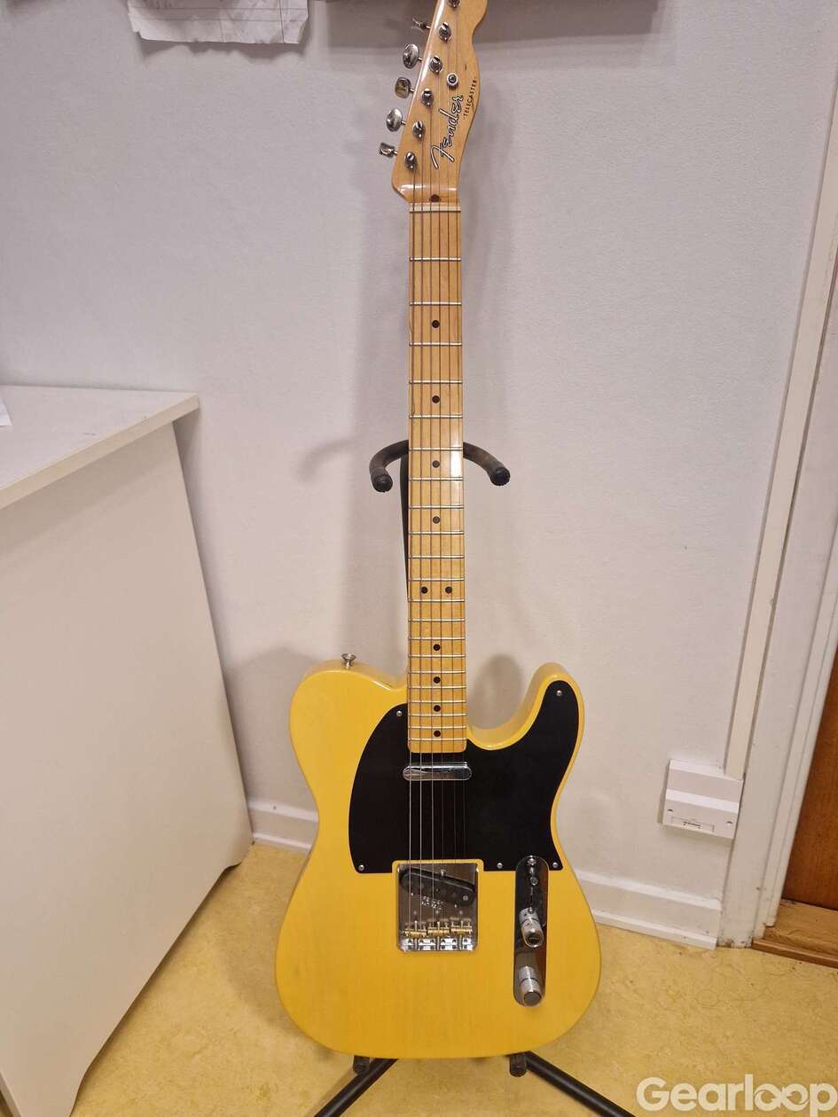 Fender Telecaster Baja 50's från 2010 i väldigt fint skick. Modellen har fyrvägs-switch där fjärde positionen seriekopplar mikrofonerna i stället för att parallellkoppla dem, som är det vanliga på Telen. Den har också Fenders S1-switch, som förändrar tonen när man använder den.