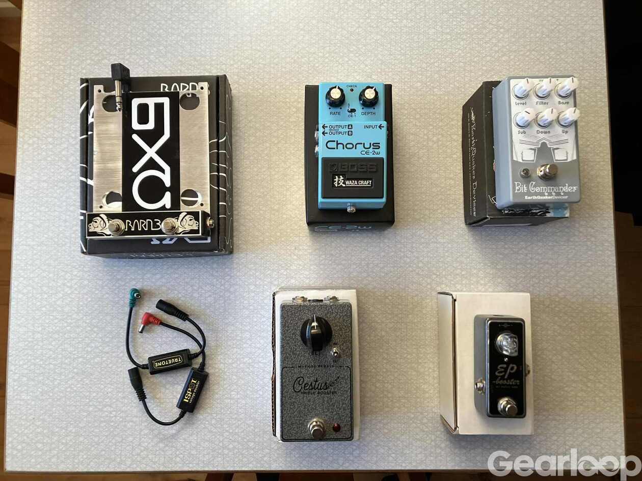 Boss CE-2W Chorus. Behöver väl knappt någon närmre presentation. Väldigt fin choruspedal som låter underbart men jag använder den för lite. Se gärna www.youtube.com/watch?v=zAyqBYjgH5I för mer info. 1800:-