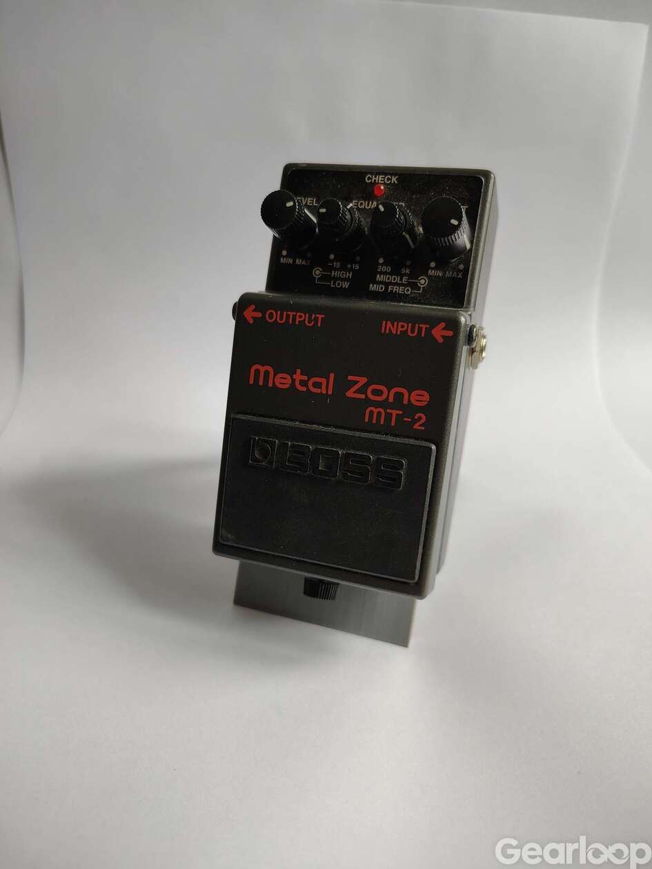 Boss Metal Zone MT-2 overdrive/distortion pedal för gitarr. Denna pedal är en klassiker inom metalgenren och ger dig möjlighet att forma ditt ljud med hjälp av nivå-, equalizer- och frekvenskontroller.