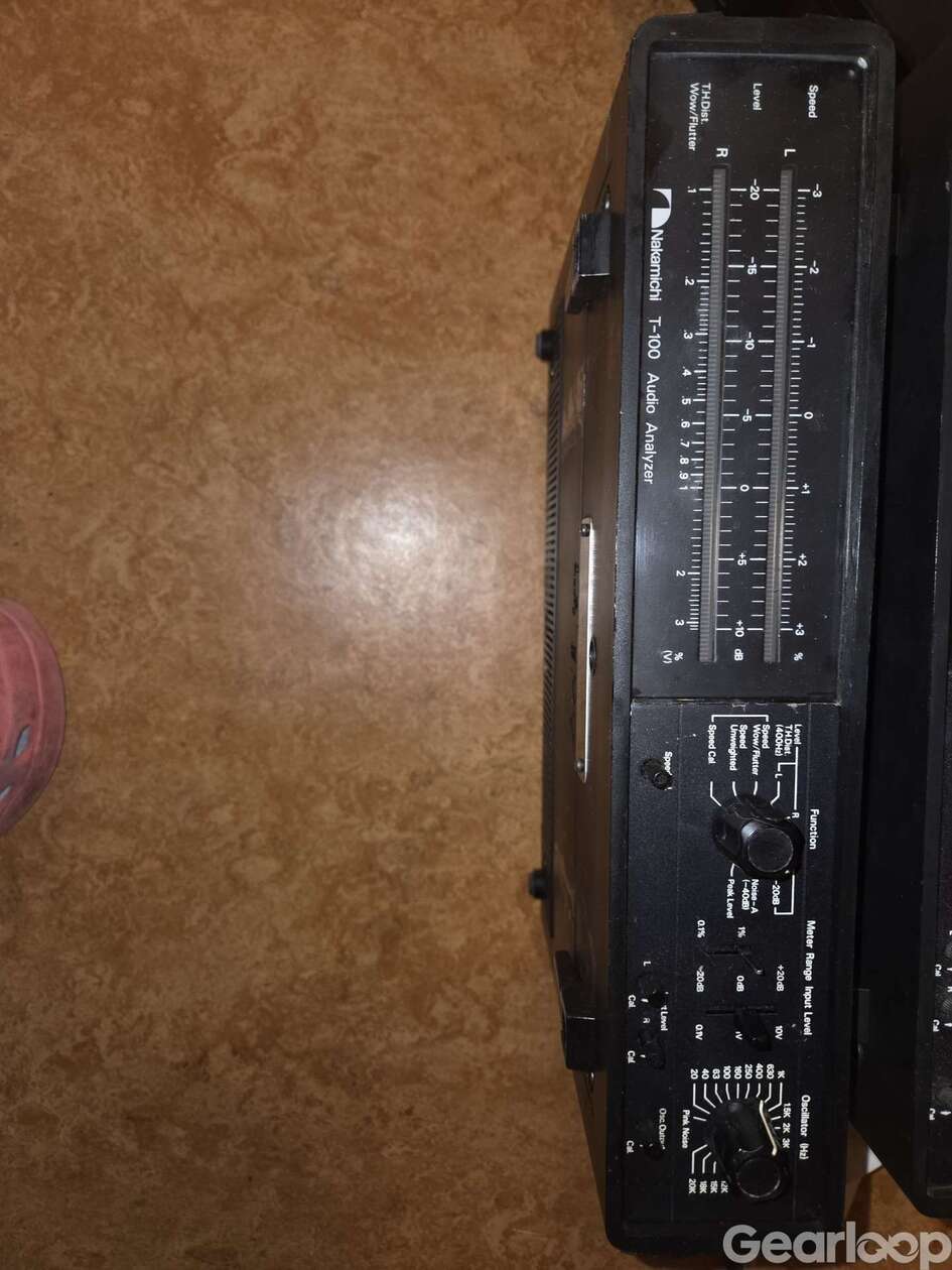 Nakamichi T-100 Audio Analyzer – ett mycket fint och numera samlarvärt testinstrument från 1970-talet/80-talet, som användes för att analysera ljudnivåer, distorsion (THD), wow & flutter (bandhastighetsvariationer) och frekvensrespons – främst vid kalibrering av bandspelare och hi-fi-utrustning.