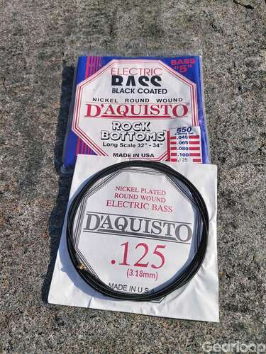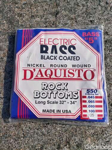 Har ett 5- set sprillans nya, riktigt bra strängar till bas liggande. D'AQUISTO BLACK COATED Rock Bottoms. Long scale. 045-125.
