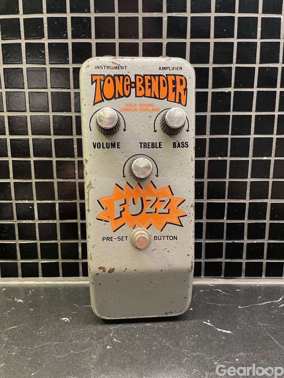 Sola sound Tone-Bender mk3 troligen från 1973 i bra skick. en del del repor och ytligt slitage men pedalen fungerar perfekt och låter skitbra (om man nu kan säga så om en fuzz).