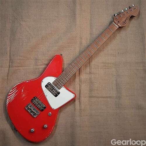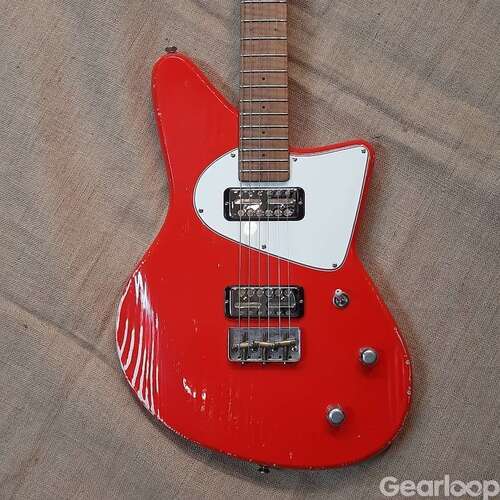 En unik italienskt handbyggd gitarr med kropp i red pine och bestyckad med ett par fantastiska Lollar goldfoil mickar.