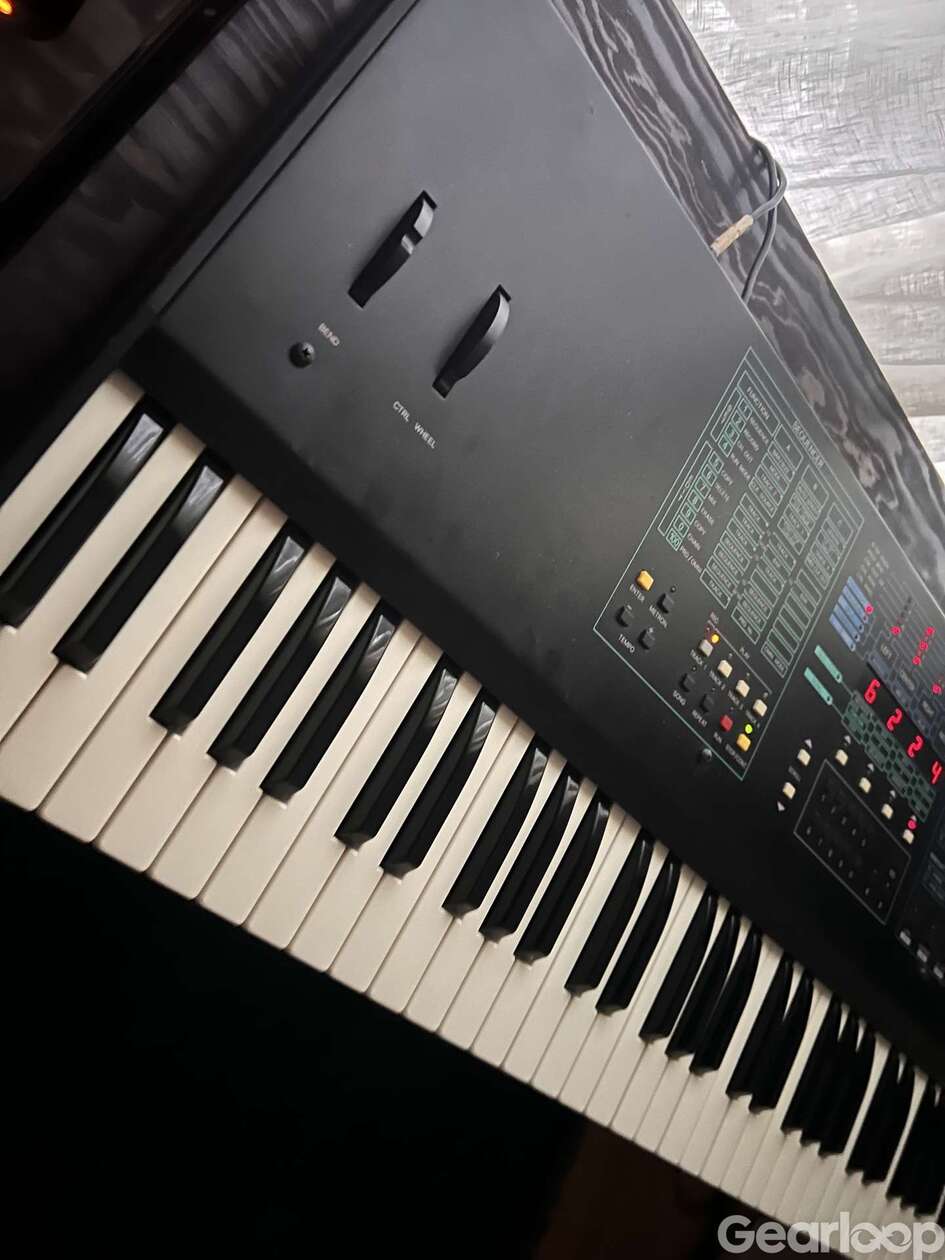 Midi Master Keyboard. Bit gick även under namn som Crumar, Unique, LEM m fl. Från italodiscons guldår och ursprung. 76 keys, massor av kontrollanslutningar, aftertouch, inbyggd sequencer, dubbla midi ut, samma goa klaviatur som Ensoniq ESQ-1 m fl. Otroligt rare (förvånad om ens 10 st hittas worldwide?) digital vintage (med spännande analog trigg/synk mm, vet inte själv vad alla de uttagen kan förmå?) som funkar hur bra som helst till allt nytt. Just nu är den kopplad till G5'an i bakgrunden men jag har lite väl många klaviaturer även om den är sjukt läcker. Tidsepok 1986 till 1988. Storleksklass: stridsvagn, JP8, M12, JX10, DX5, Moog One mm. Om du skapar med en lätt USB-klaviatur så borde du testa en tung stor riktig syntklaviatur såsom denna för bättre känsla. 230 hårda DATAvolt och ingen såsig väggvårta du glömmer i sommarstugan. Mintig och felfri bortsett från att högra gaveln saknar lite plast. Gör egna koola trägavlar i stället? Det gör jag nog om den inte säljs. POK. Hemkörning inom Sthlm kan ordnas.