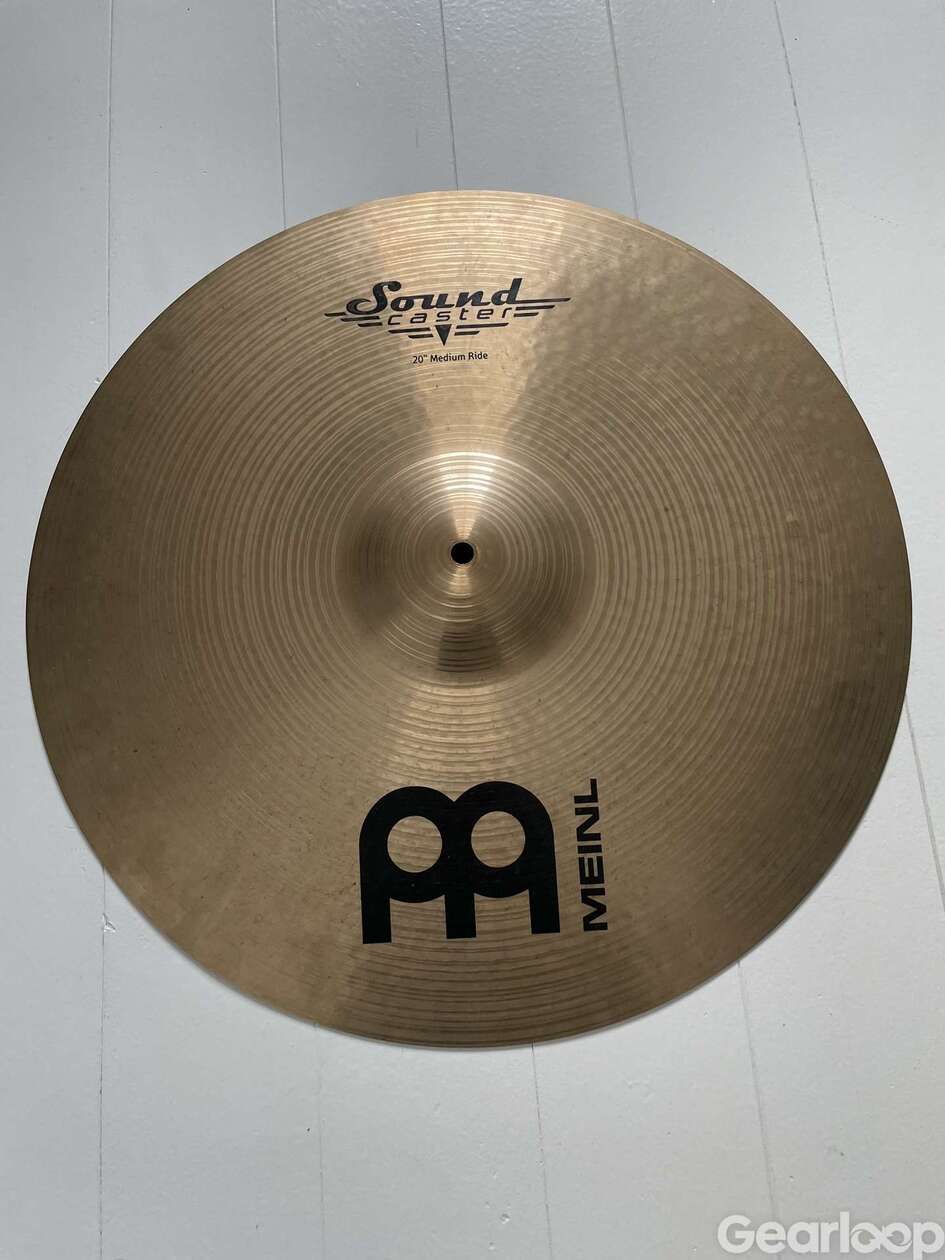 En Meinl Soundcaster medium ride 20". Använd, men fri från sprickor och nyckelhål. OBS: Detta är alltså inte "custom"-modellen. Just denna versionen tillverkas inte längre.