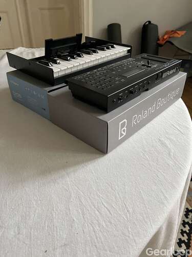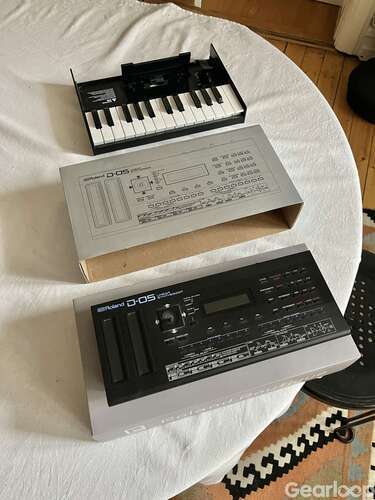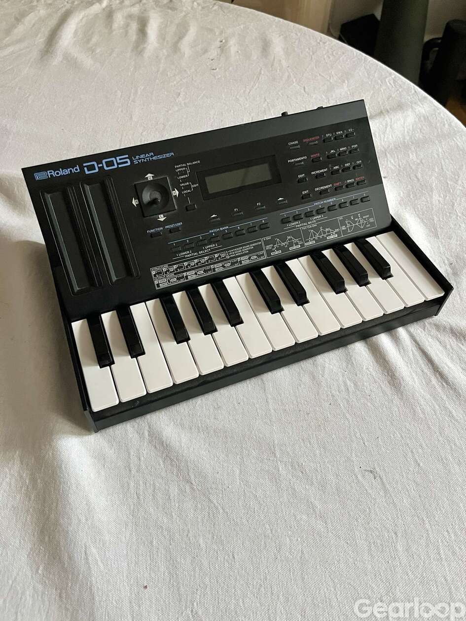 Roland D-05 från Rolands boutique-serie i väldigt gott skick. Synten inköpt 2019 och är använd endast ett fåtal gånger. Roland K25-keyboard medföljer, även detta använt ett fåtal ggr. Originalkartong till D-05:an medföljer.
