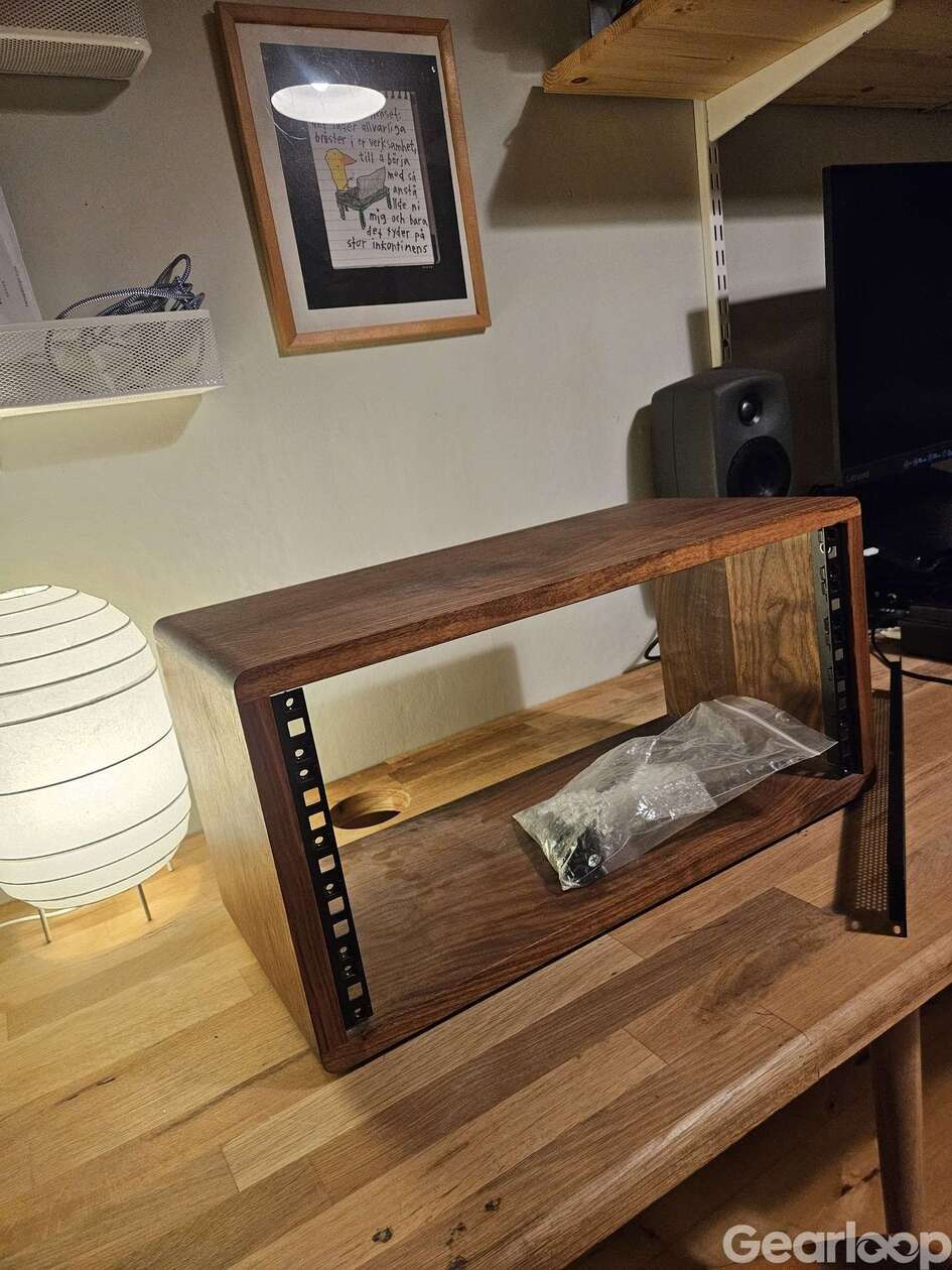 Köpte det här skräddarsydda racket för drygt fyra år sedan. Fin valnötsfärg på träet.