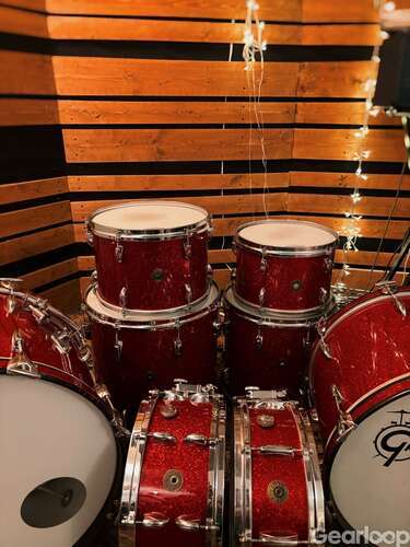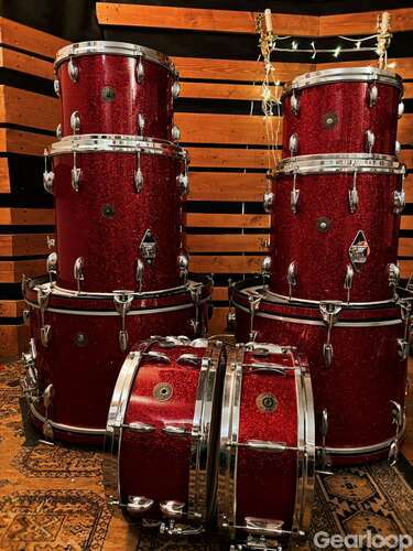 Gretsch round badge säljes! Trummorna är i fint skick och låter verkligen otroligt. Med 22", 20", 16", 14", 13", 12" och 2 st 14"-virvlar (ena 6,5" och andra 5" djup) finns möjligheten att välja och vraka bland olika setups. Trummorna är från början två separata kits som fått sig en översyn och genomgång, och sen klätts i fina wrapen red glass glitter.