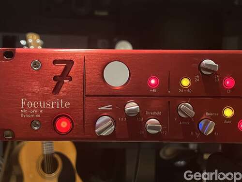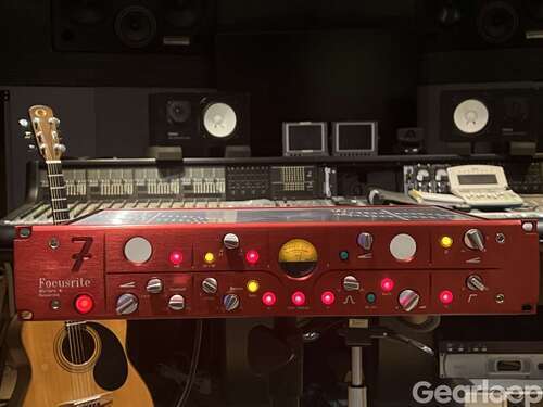 Focusrite Red 7 En mikrofon och linje preamp med kompressor och filterdel med de-esser. Filterdelen består av ett ställbart hi pass filter ( basavskärning ) och en de-esser som kan användas för diskant lyft, shelving. Den låter givetvis kanon, men jag har 17st outboard preamps, samt ett 40-tal kanaler Calrec i bord. Den förtjänar att användas. Passar till allt. En mycket välljudande förstärkare som du också kan ha i mix. För dig som jobbar med sång eller voice over är den ypperlig. Ny låg den upp emot 40.000:- tycker att 12.499:- är ett trevligt pris. Kan skickas med vad vi kommer överens om. Finns i Enskede.