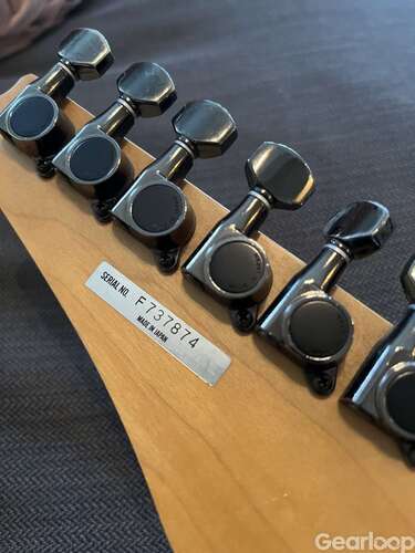 Edge tremolo med backstop. 10,8 mm stringspacing. Cosmo black hardware. Gotoh Sg38 stämmmisar.