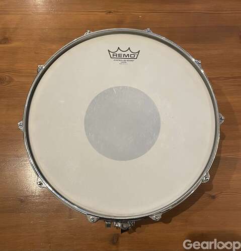 Bra skick. Kommer med nya Remo skin (Controlled Sound Coated Black Dot + Ambassador Clear Snare Side) och en hel ny Puresound sejarmatta 20 strands.