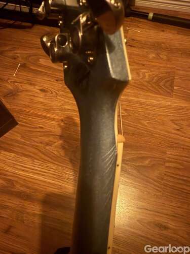 Sprickbildning i klarlacken uppe vid huvudet. Var så när jag köpte den och påverkar varken spelkänsla eller ljud. Inget man känner av när man drar handen över halsen, kom och testa själv.