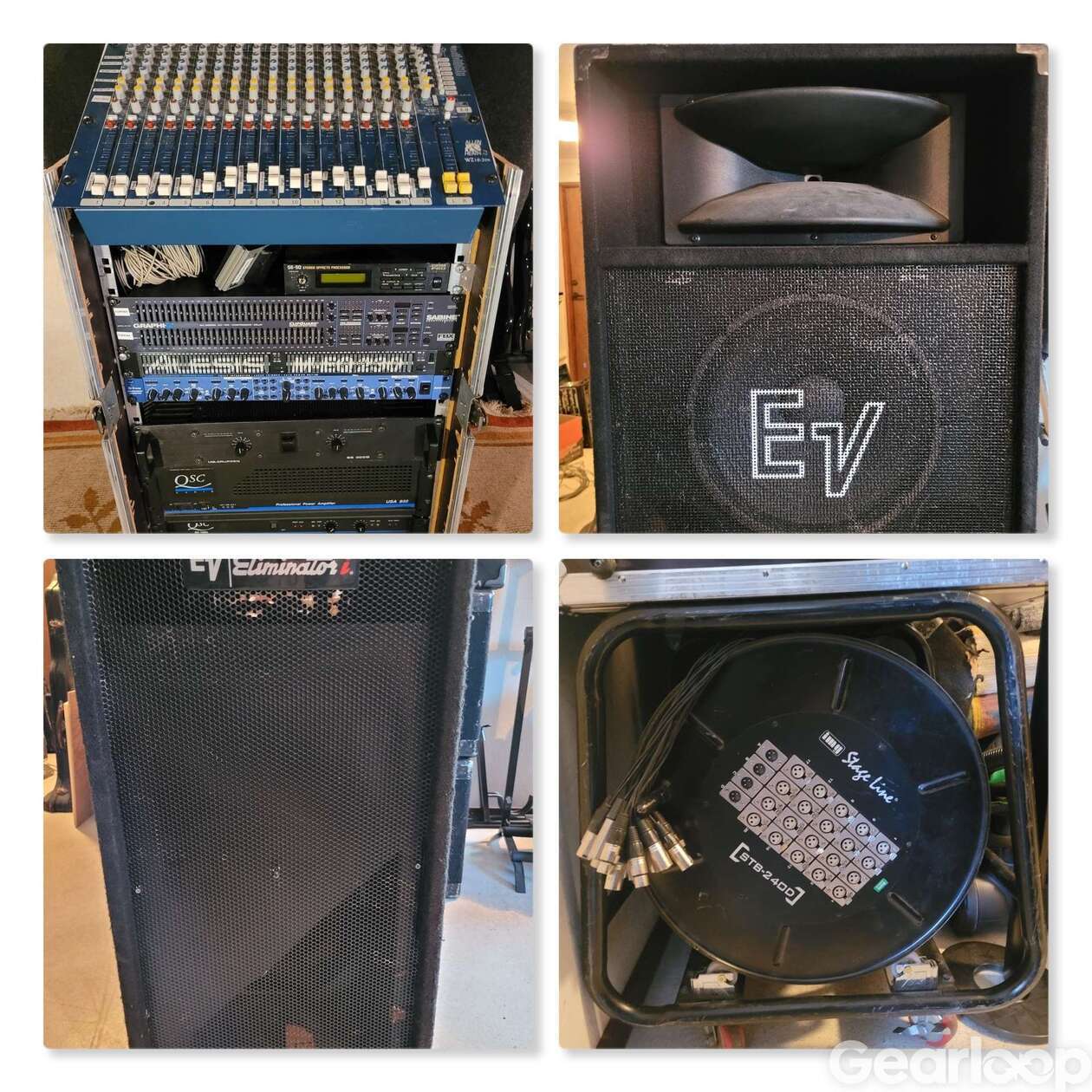 PA-anläggning. Electro Voice högtalare & QSC slutsteg mm