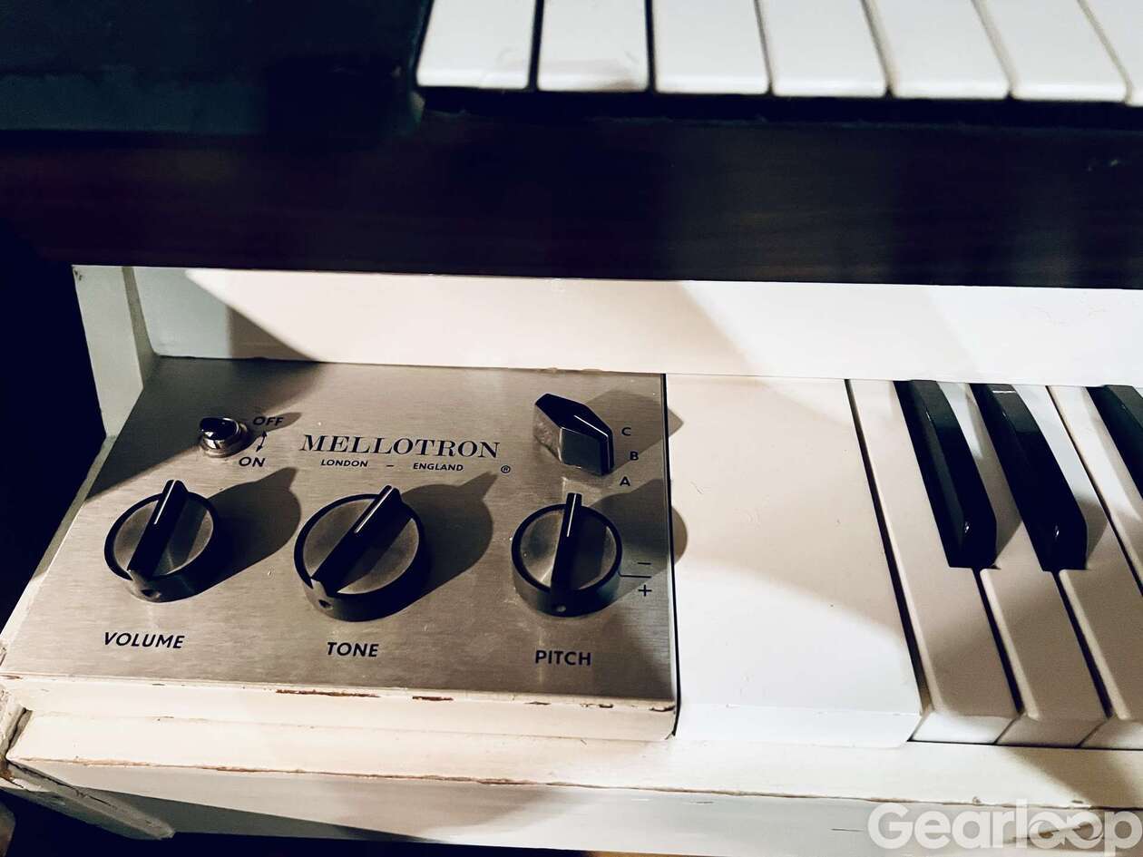Jag överväger att eventuellt sälja detta magiska instrument. En äkta Mellotron M400 i originalutförande. Serienumret är #396 och ska vara tillverkad i början av 1971. Den är sliten, patinerad och skulle må gott av en renovering, men allt fungerar faktiskt på den. En ny motor med half speed följer med vid köp och kan installeras av händig person. Ljuden är flute, strings och cello. Videoexempel finns för den som är intresserad.