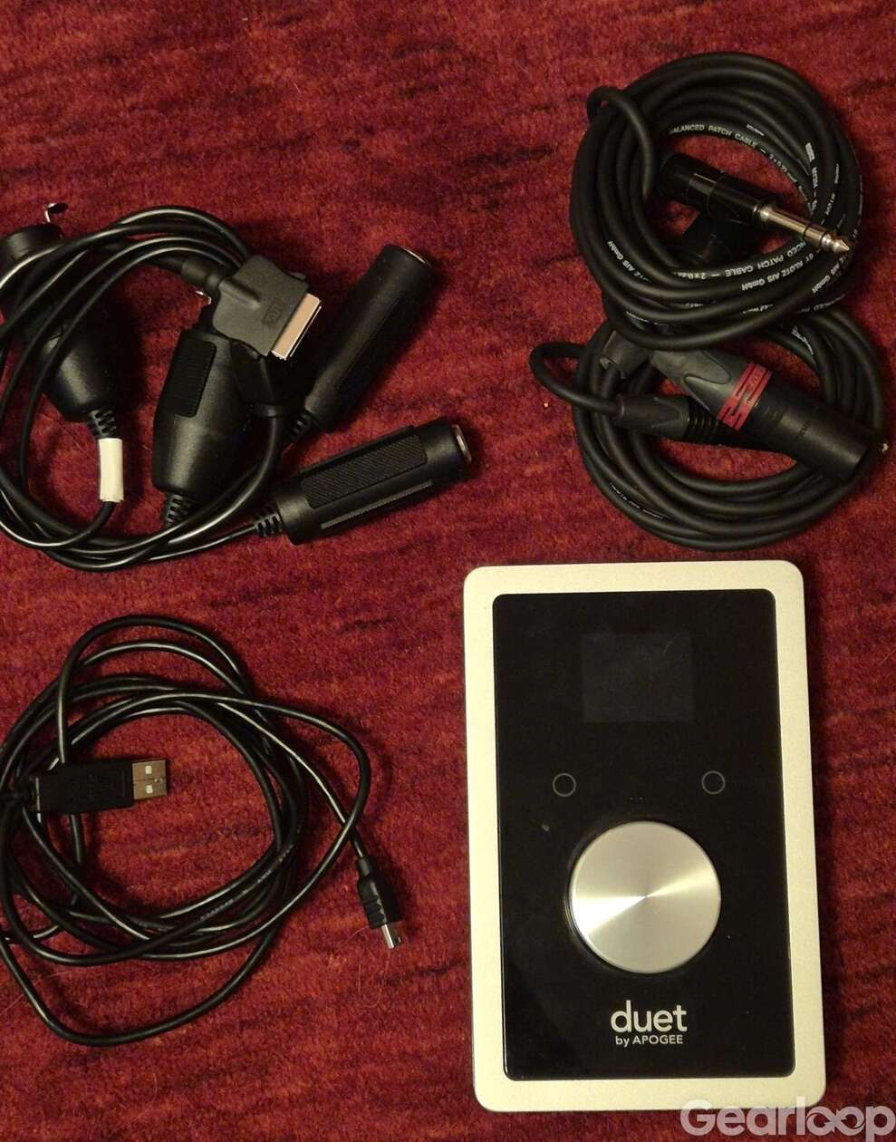 Begagnad Apogee Duet 2 med tillhörande kablar. Lägger också med kablar för aktiva högtalare. Äldre modell men fungerar perfekt.