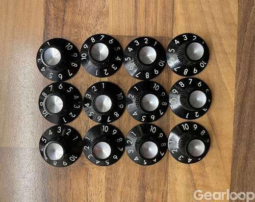 För över två år sedan fick jag då min Silverface Dual Showman Reverb topp ombyggd till 1960-63 års 6G14-A Brownface-specifikationer. Nu håller jag på att ändra utseendet på kabinettet och sånt. Den här kompletta uppsättningen med originalrattar och spill på tygkablar, RCA-uttag för reverbet, kolmotstånd osv kan kanske tilltala någon som håller på att restaurera/bygga om sin förstärkare? En av rattarna är något skadad, se bild, annars är de alla i utmärkt skick.