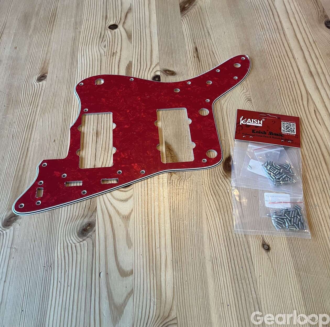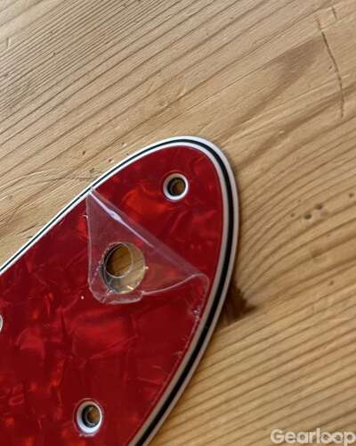Plektrumskyddet är i fyra lager (topp röd pärlemor) och passar perfekt till min -93 Jazzmaster (Fujigen). Skyddsfilm kvar.