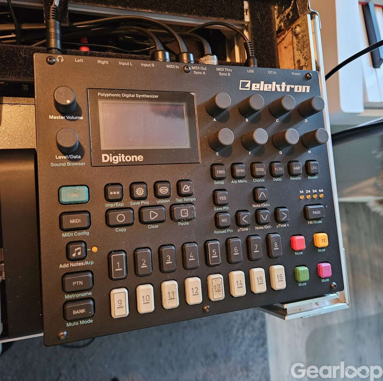 Jag är enda ägaren av denna Digitone. Tyvärr har Elektron valt att ha någon slags gummibeläggning på knapparna, så några av dessa har lite oundvikligt ytligt slitage.