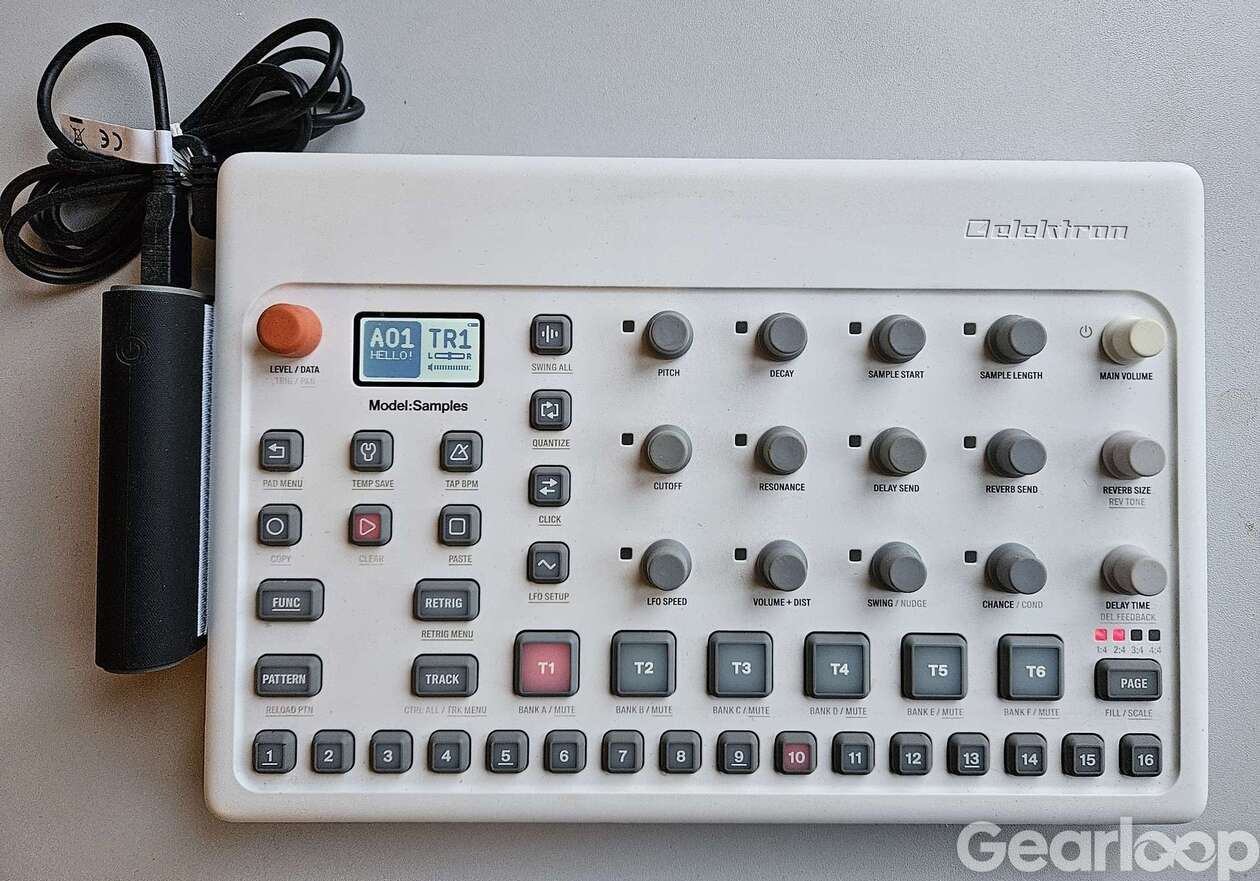 Groovebox/Samplespelare/Sequencer Elektron Model Samples med batteripack, strömadapter och USB-kabel. Utskriven manual kan skickas med. Powerbanken är en Linocell 5200mAh som sitter fast med kardborre på sidan. Kan skickas.