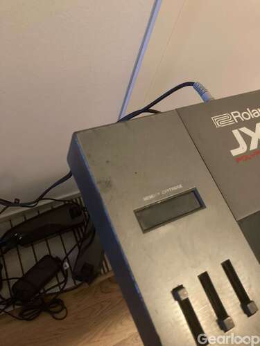 Roland JX-8P som. Några små skavanker (se bilder) och lite sliten här och där, men fungerar helt felfritt och låter grymt.