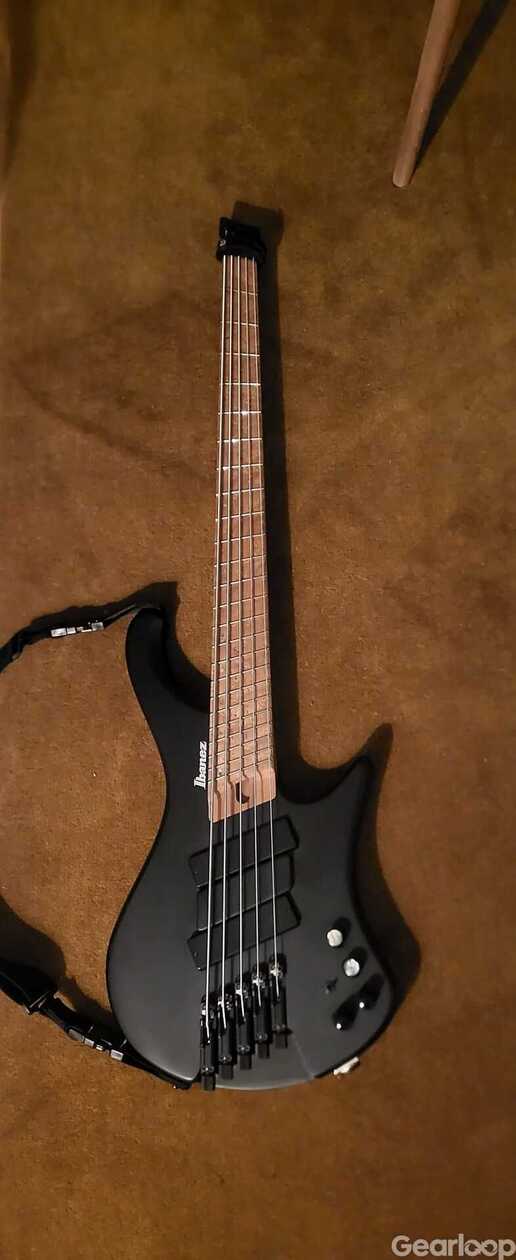 Säljer ett kanonfint, riktigt premium instrument från Ibanez. Femsträngad bas i multiscale, Ibanez EHB1005MS i färgen Black Flat. Det här är utan tvekan den skönaste och mest ergonomiska basen jag spelat, mycket tack vare den lätta vikten och att den är headless. Säljer för att jag saknar att spela fyrasträngad (kommer införskaffa en likadan fast fyrasträngad). Basen är i multiscale, vilket ger den en superskön spelupplevelse som man vänjer sig vid snabbt, och framförallt gör att B-strängen är tajt och tydlig. Basen är i fint skick. Har straplocks installerade (se bilder för exempel, själva strapen ingår dock ej), samt gigbag. Basen kan fraktas (på köparens bekostnad) i sin originalförpackning.