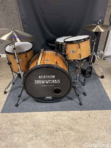 One of a kind, stavlimmat handgjort set av finska Northern Drumworks i lokalt cherrywood. Detta set är unikt och du blir ensam i Sverige med det. Blacknickel hardware och handgjorda träsarger på baskaggen. 22,12,16