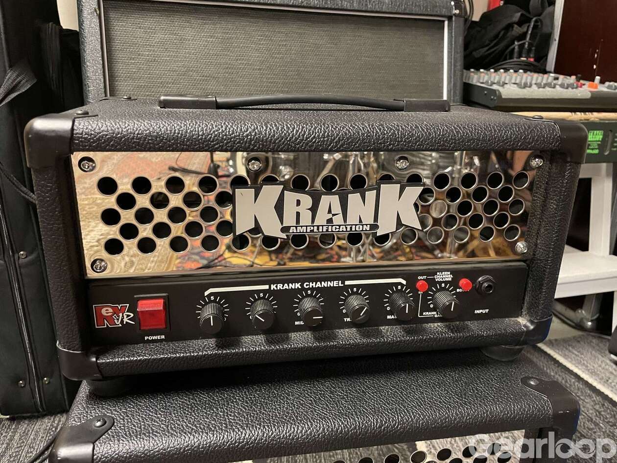 Krank Rev Jr 20w rörförstärkare med två kanaler, en ren och en distad. Den rena kanalen är kanske inte så mycket att hurra över då den saknar eq utan bara består av en volym och boost. Man kan sätta en eq i effektloopen dock.