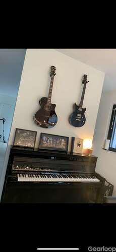 Spelar mest akustisk gitarr så den har inte använts mycket. Strängarna är gamla men den är i mkt gott skick!