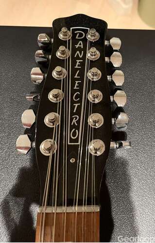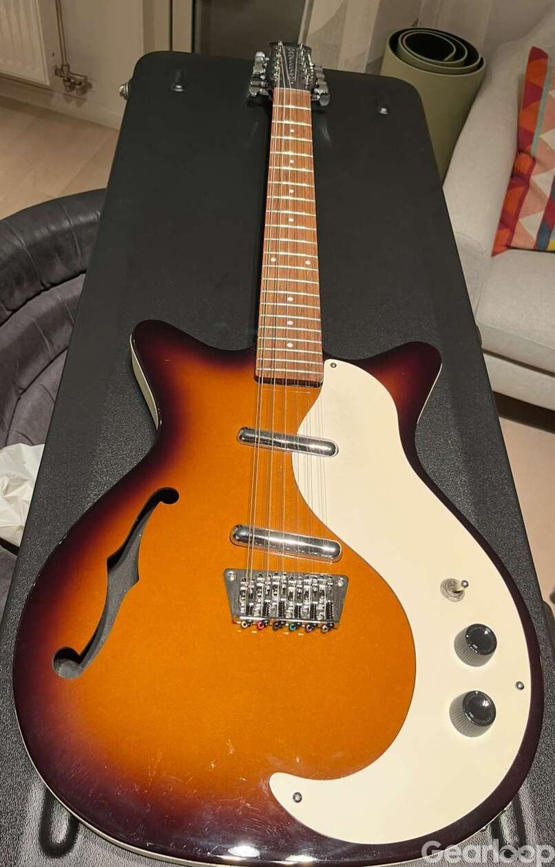 Danelectro 12-strängad gitarr med sunburst-finish. Made in Korea. Gitarren är utrustad med två single-coil pickuper ("lipsticks" och en justerbar brygga. Riktigt fint "jangle".