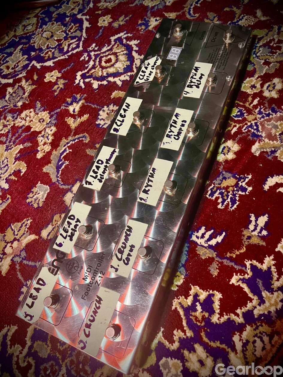 Sitter självlysande tejp vid knapparna med text på. ta bort tejpen eller använd den med din egen text. pris satt med hänsyn till det. Jag har främst använt den till att styra Axe FX, funkat kanon. Kardborre under.