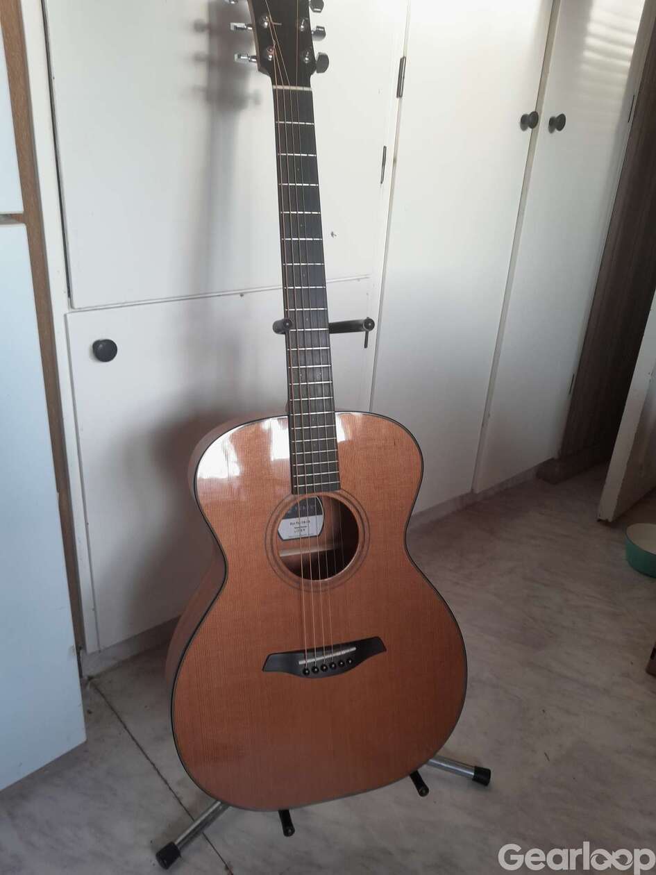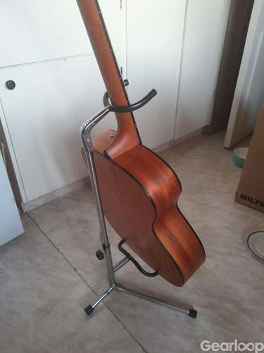 Den fick ingen speltid, mest pga halsprofilen som inte stämde för mig. Otroligt rikt och mustigt ljud, utan den övermåtta diskant och bas som ofta följer med "fina" gitarrer. En mid som låter melodin, "berättelsen" i musiken komma fram. Den är körd minst 500 timmar med sån där vibrator, ToneRite, för dom som tror på sånt. Halsbredd 45 mm vid sadeln. Nypris 14500. Inget case tyvärr, men en standard kartonglåda för gitarrer kan skickas med. Finns i Järna, men kan ev. visas i Storstockholmstrakten om intresse finns.