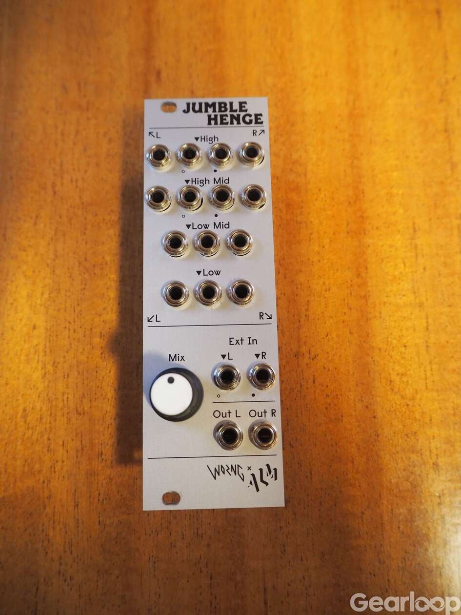 Alm jumble henge - Kompakt spektral mixer med 14 inputs och stereo external in(berörs ej av filter-ratten) och stereo out. På 8 hp! I samarbete med Worng electronics.